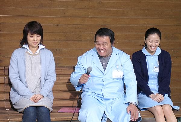 ロケ地にて行われた記者発表。左が石田ゆり子さん、右が中越典子さん。
